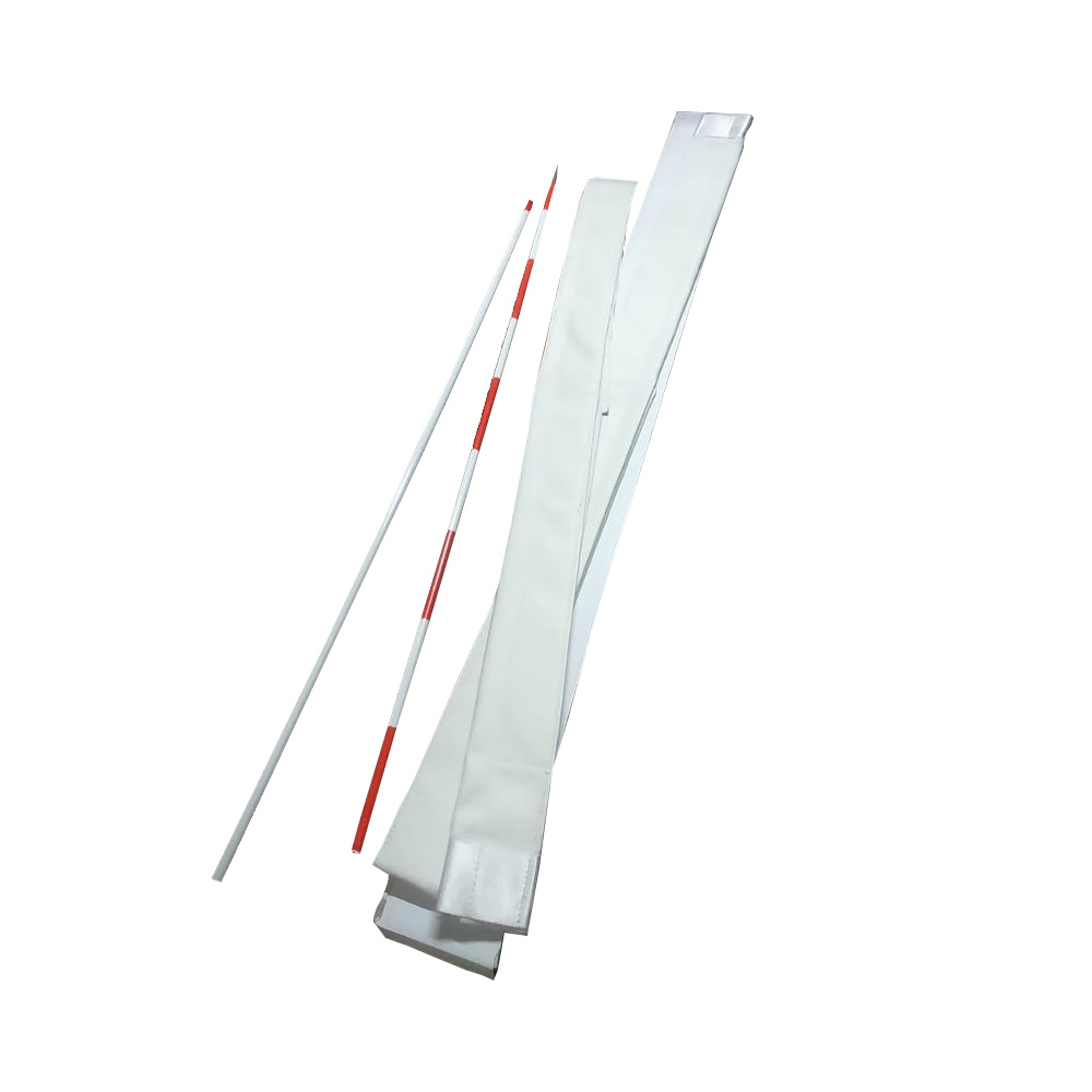 Juego compuesto por dos varillas de fibra de vidrio de alta resistencia, con conector metálico de acero. Colores rojo y blanco para máxima visibilidad en cancha. Medidas aproximadas: 90 y 95 cm. Incluye dos bolsillos de vinilo blanco con fijación mediante velcro resistente, para una sujeción segura y práctica a la red.