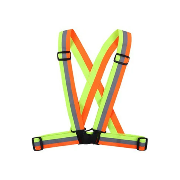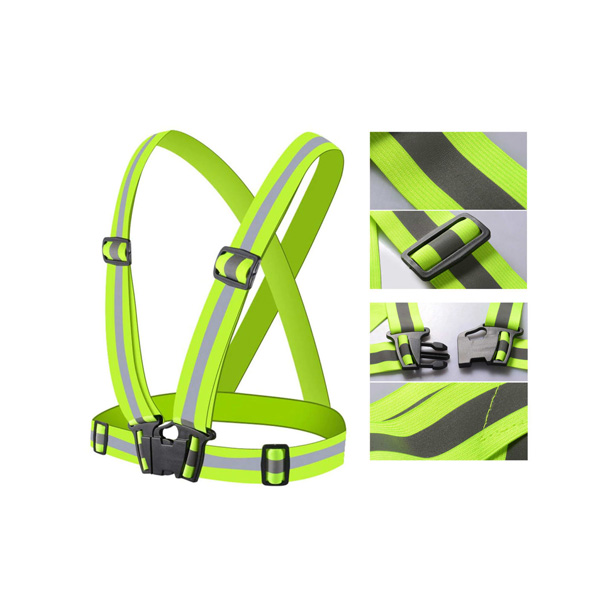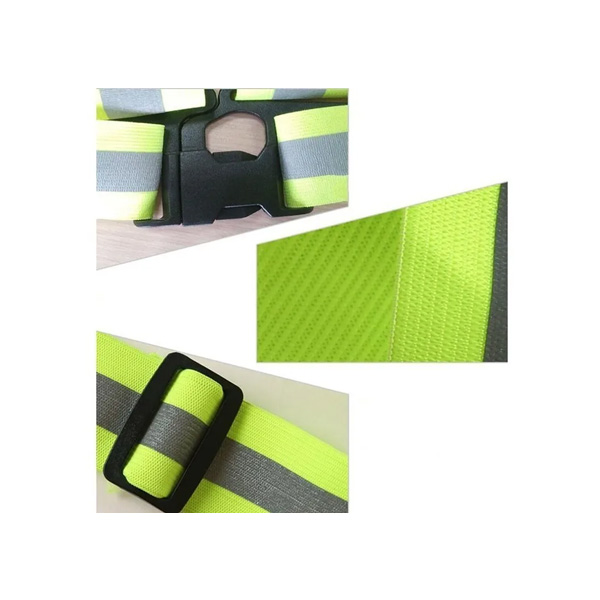 Color amarillo flúor, gris y naranja o según stock.  Bandas reflectantes de alta potencia.  Bucle profesional, Material: fibra de poliéster. Cierre por hebillas, fácil para llevar o liberar. Tiene un alcance de más de 200 metros.   Adaptable a todo tipo de cuerpo al ser material elásticado.