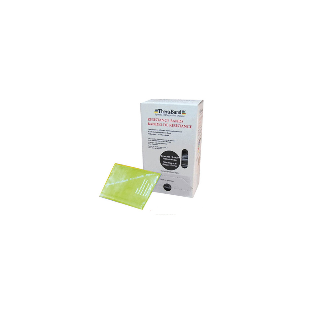 Rollos de 1,5 Mt. de largo por 12,5 Cm. de ancho aproximadamente. Color amarillo, resistencia suave.La única Banda elástica Certificada por la American Physical Therapy Association APTA. Banda elástica de trabajo progresivo, muy superior a la marca; Cando, Fit Band, FisioBand, entre otras con una densidad de 0.12mm