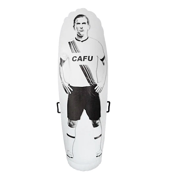 Fabricado en PVC suave y resistente, sin ninguna parte rígida, lo que hace de esta barrera un elemento 100% seguro. La base se llena con agua, de esta manera, una vez golpeado, el defensa recupera su posición vertical en segundos.Dispone de 2 asas muy prácticas para mover. Evita posibles daños y lesiones, en especial para el trabajo de los porteros.