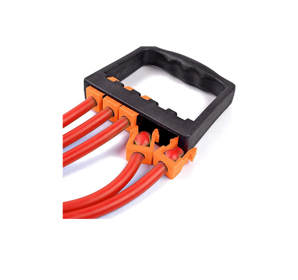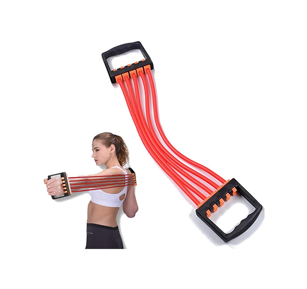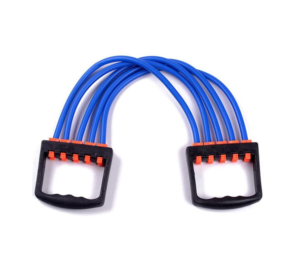 Extensor con elásticos ajustables. Consta de 5 tubos de látex para entrenamiento muscular.