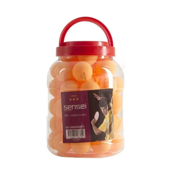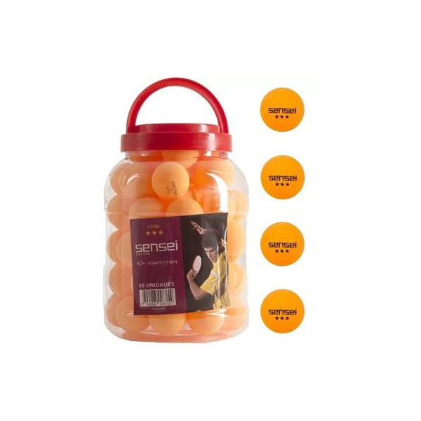 Frasco  de 60 Pelotas de Ping Pong 3 Star – Marca: Sensei.- Color: Naranja.- Material: ABS.- Diámetro: 40,5 mm.