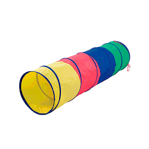 Túnel de juego plegable fabricado en resistente nylon, ideal para actividades recreativas y de estimulación psicomotriz. Mide 180 cm de largo por 45 cm de diámetro, y viene con un práctico bolso de transporte para facilitar su traslado y almacenamiento.